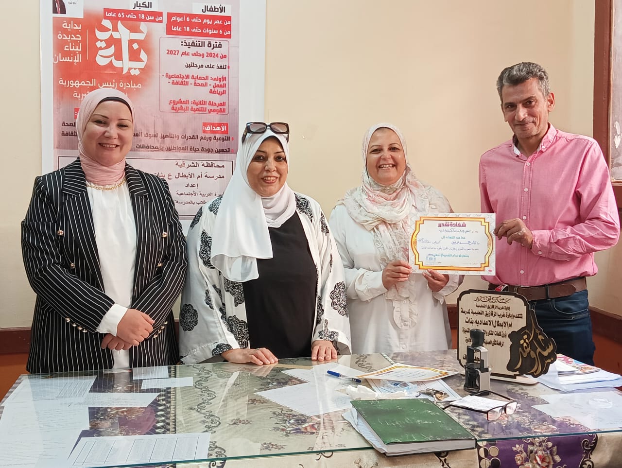 التعليم الاعدادي المركزي بمديرية. التربية والتعليم بالشرقية يكرم مديرة المدرسة وطاقمها كنموذج مشرف في الانضباط والعمل المتميز