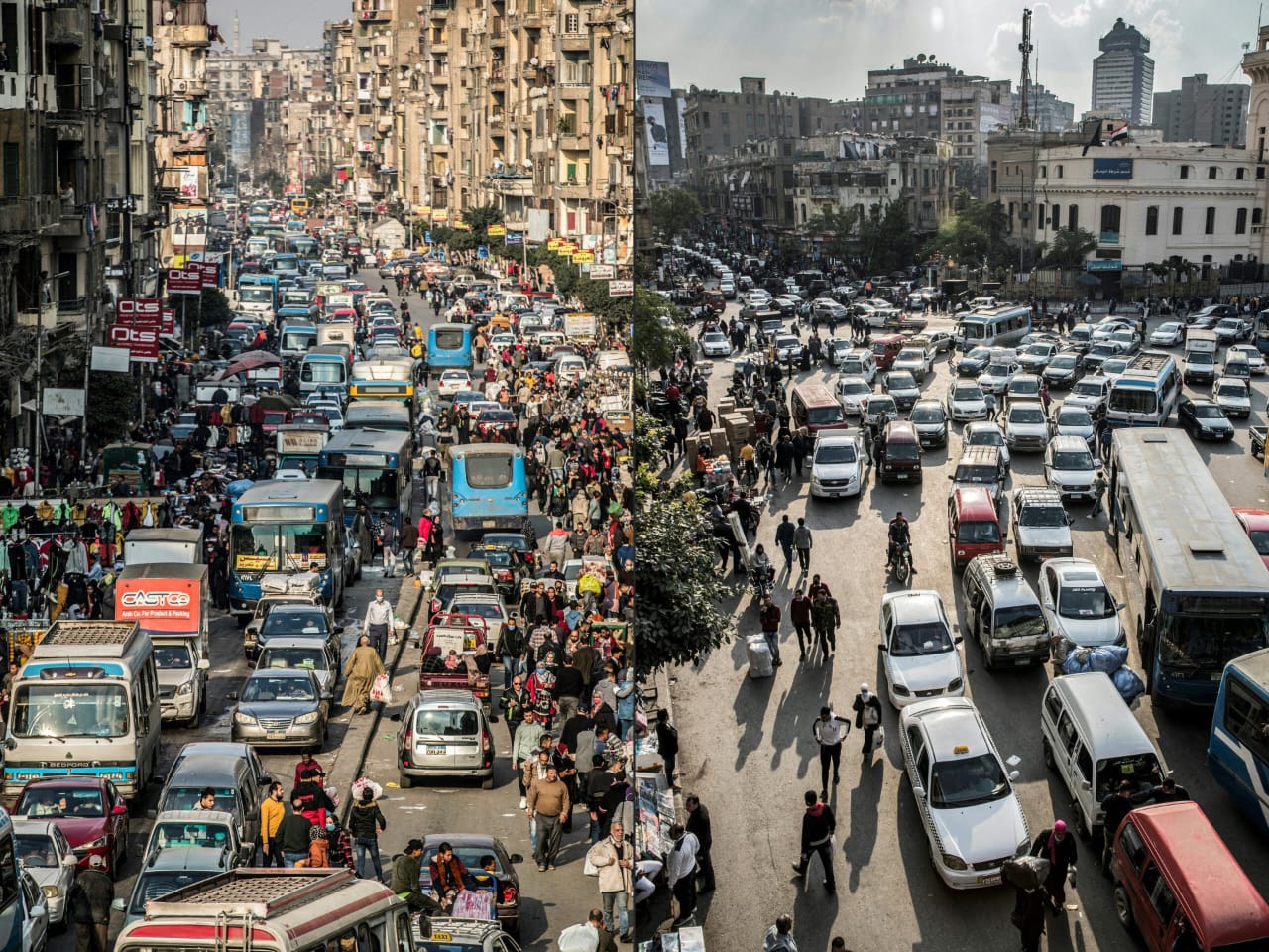 تشهد القاهرة أكثر من 12 مليون رحلة يوميًا عبر وسائل النقل المختلفة مثل المترو، الأتوبيسات، الميكروباصات، والتوك توك، بحسب تقارير حكومية، ويقضي المواطنون ما بين ساعة إلى ساعتين يوميًا في الزحام، ما يجعل العاصمة من أكثر المدن ازدحامًا في العالم.