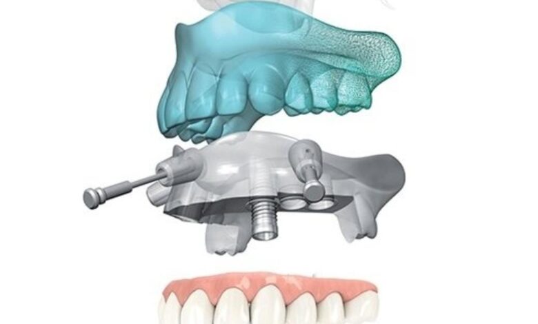 دليل جراحي يتم طباعته باستخدام الطباعة ثلاثية الأبعاد، يوجه الزراعة بدقة أثناء التركيب.