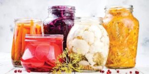 الخضروات المخمرة: مثل مخلل الكرنب (الملفوف)، الجزر، الفجل.
